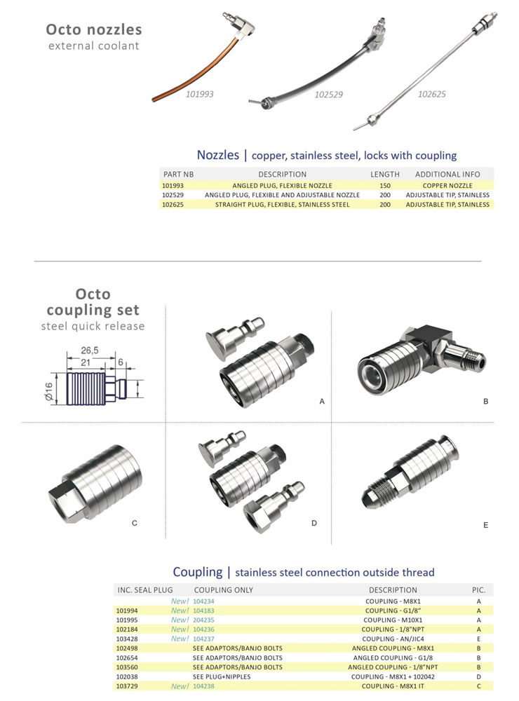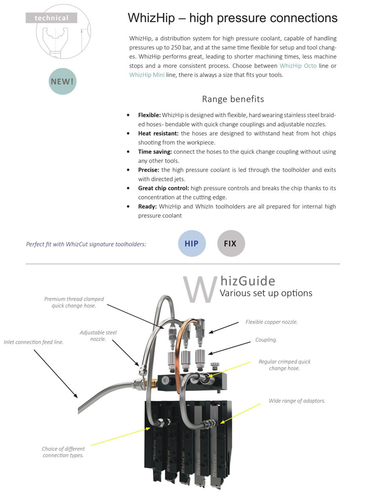 内部給油加工を実現する為の使いやすいクーラントホースと継ぎ手のシステムです