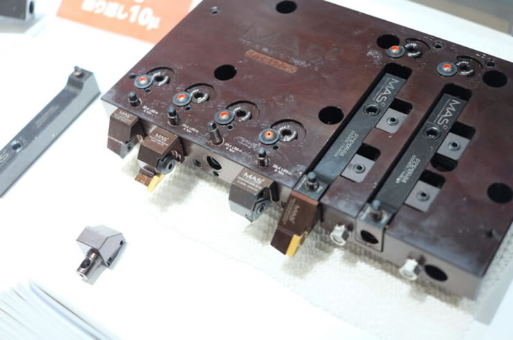 加工中に予め機外で新しいヘッドにインサートをセットしておいて計測、インサートが摩耗したらヘッドごと交換して刃物交換作業時間を劇的に短縮できます。