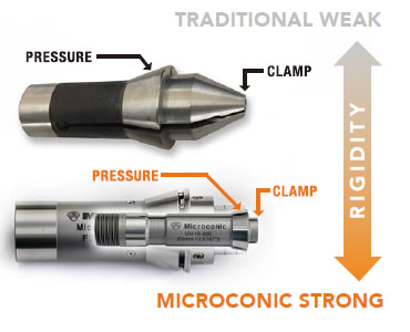 マイクロコニックシステムは設備の油圧でマイクロコニックカートリッジを加圧しますが、この力をカートリッジ内部で変換してコレットを開閉しています。