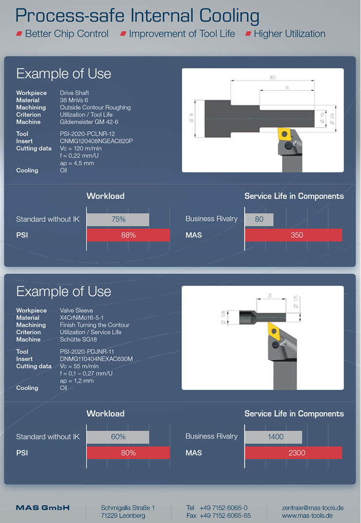PSIターンなら誰でも同じようにクーラントを刃先にピンポイントで掛けることができます。切り屑トラブルの改善、刃物交換頻度の低減に有効です。