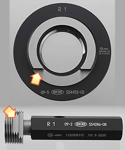 - ワークにゲージをねじ込んだ際、ワーク端面にゲージ端面が密着すればワークは良品です。